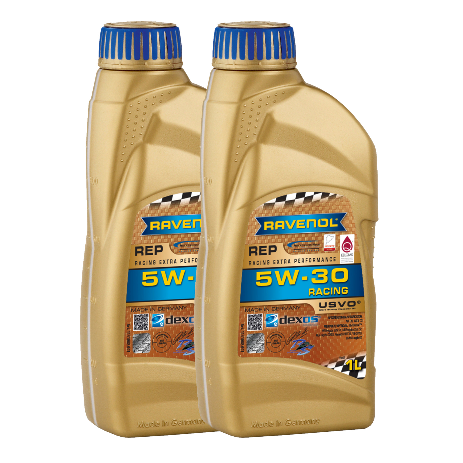 RAVENOL REP SAE 5W-30 este un ulei integral sintetic, pe baza de PAO (poly-alpha-olefine), realizat prin tehnologia USVO®, destinat motoarelor de curse.Tehnologia USVO® ofera inalta performanta, protectie ridicata a motorului, consum de combustibil redus, dar si o curatare optimizata a motorului. Datorita indexului de vascozitate inalt, stabilitatii la forfecare si utilizarii molibdenului si tungstenului in formula sa, RAVENOL REP SAE 5W-30 este potrivit si pentru un stil de condus sportiv extrem. RAVENOL REP SAE 5W-30 utilizeaza proprietatile pozitive ale molibdenului si tungstenului pentru a netezi structura de suprafata a motorului, reducand frecarea, uzura si imbunatatind in mod simtitor eficienta mecanica. RAVENOL REP SAE 5W-30 ofera un strat de lubrifiere sigur datorita formulei unice, chiar si la cele mai inalte temperaturi de operare, protejeaza impotriva coroziunii (oxidarii) si spumarii.
