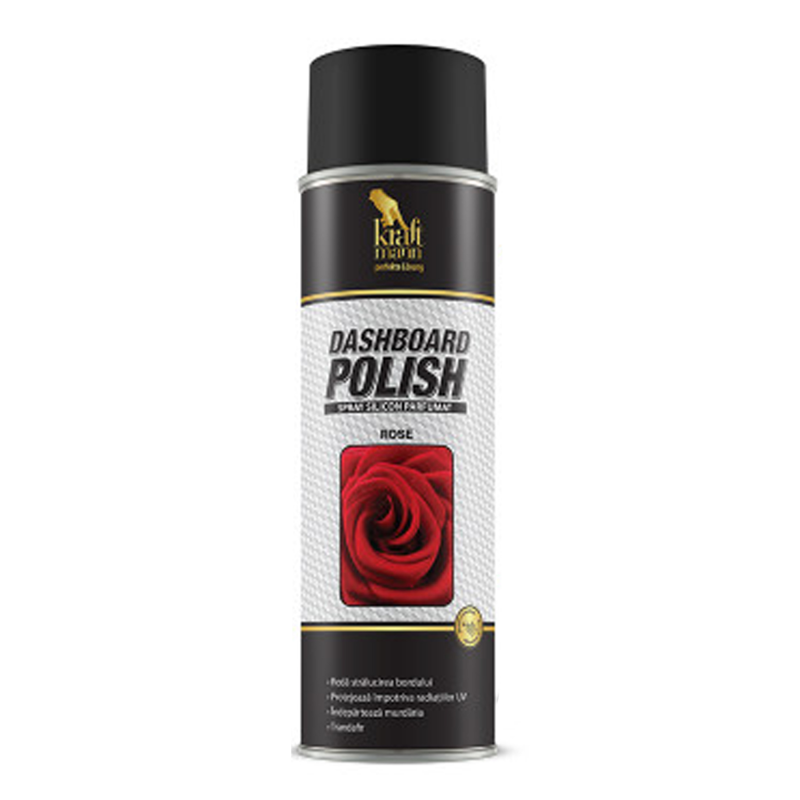 Spray siliconic parfumat cu multiple utilizări: gresează și protejează suprafețele din piele, vinilin, cauciuc, plastic, metal și în special redă un aspect strălucitor bordului mașinii, având un efect antistatic.