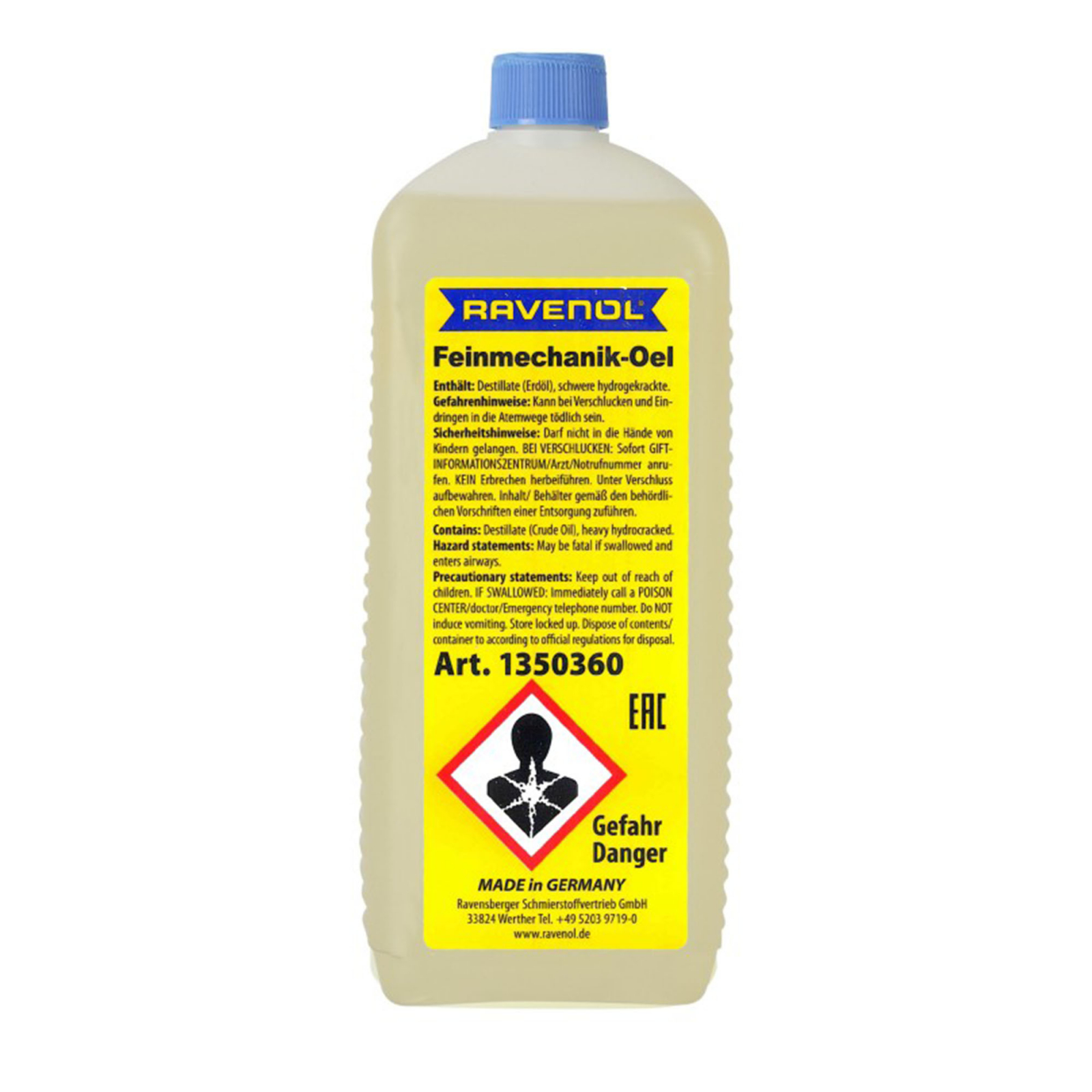 RAVENOL Feinmechanik-Oel este un ulei universal, multifunctional, fara rasina si acizi, potrivit in mod special pentru lubrifierea pieselor mecanice de precizie, de inalta tehnologie. Este tratat printr-un proces de hidrofinisare si oxideaza foarte incet sub influenta UV sau a oxigenului. Este potrivit si pentru mecanismele cu miscari foarte rapide. RAVENOL Feinmechanik-Oel poarte fi utilizat in scopuri generice, precum pentru biciclete, masini de cusut, echipamente de intretinere casnice sau de birou, incuietori, masini, motociclete, etc, si oriunde unde acest tip de ulei multifunctional este solicitat.