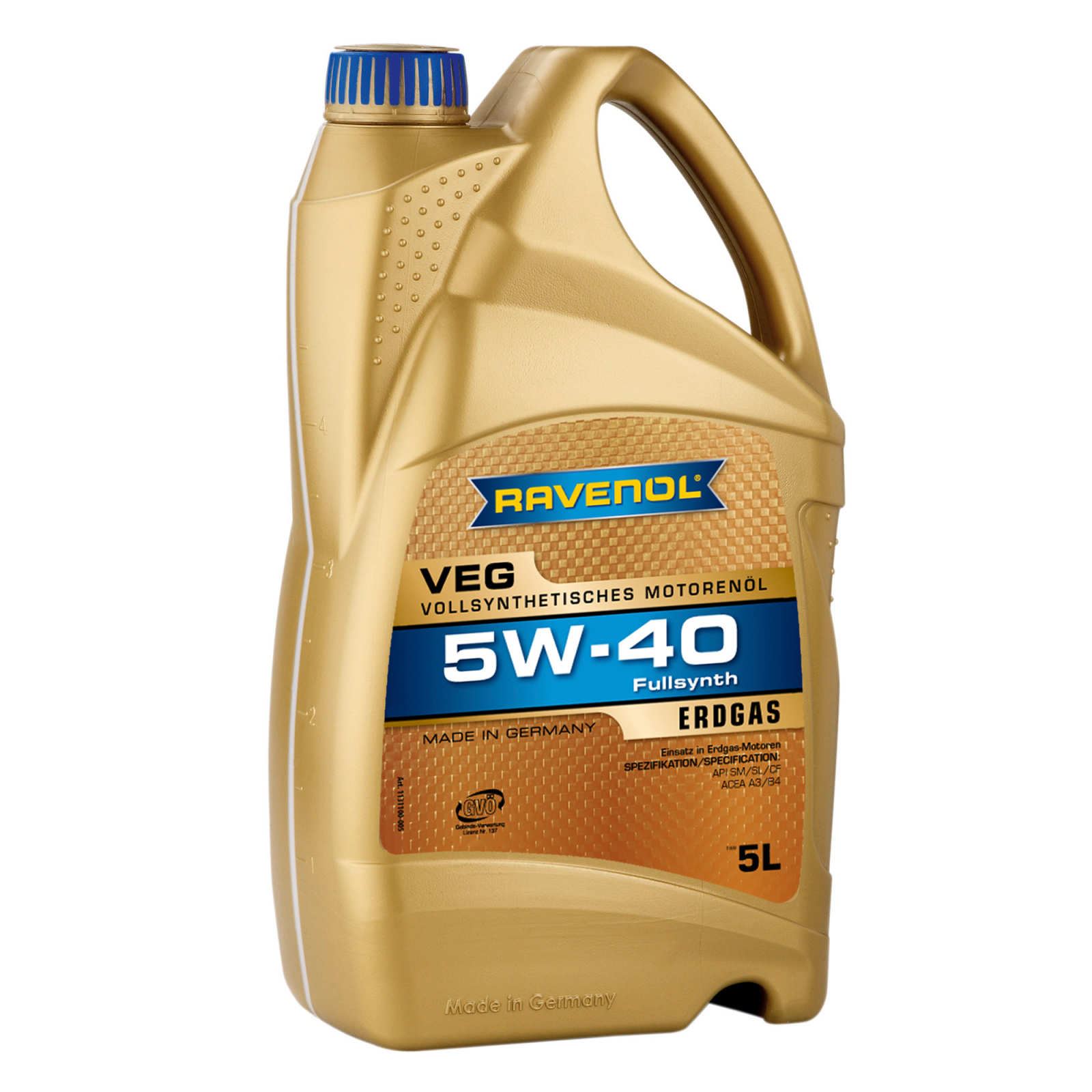 RAVENOL VEG SAE 5W-40 este un ulei de motor integral sintetic, bazat pr uleiuri de baza fullsintetice de inalta calitate si polyalphaolefine (PAO), potrivit pentru lubrifierea motoarelor pe gaz. Pelicula de lubrifiere este puternic adeziva, ofera o stabilitate ridicata la forfecare, o putere excelenta de curatare si rezistenta la imbatranire.